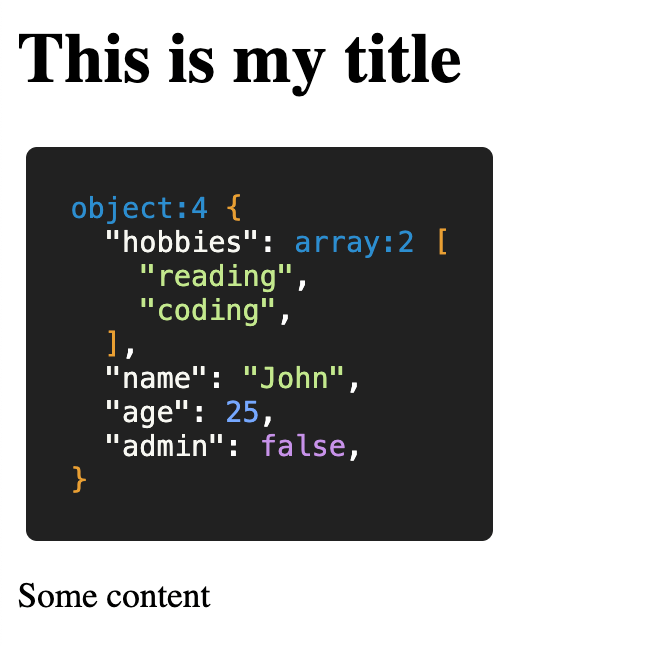 The @dump directive will feel familiar to Laravel and Symfony users. It is primarily used for debugging purposes. This directive outputs the value of variables, objects, arrays, strings and other data types to the screen.